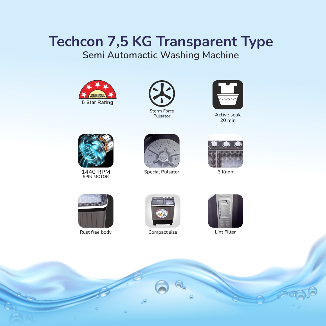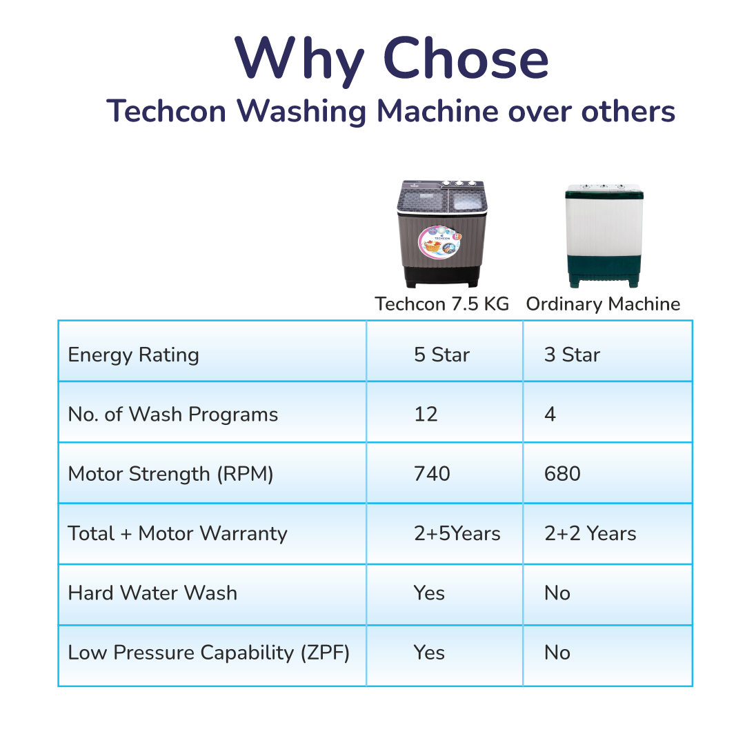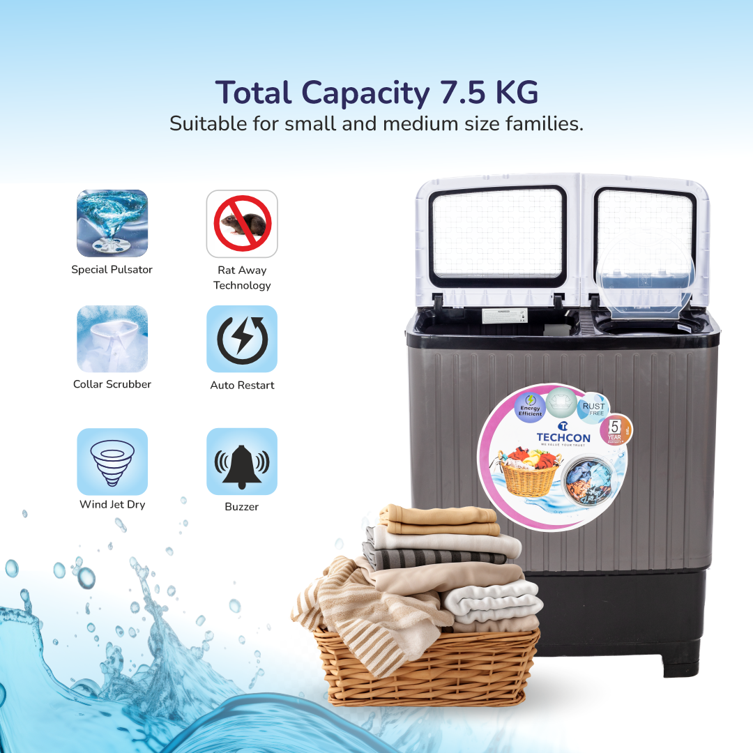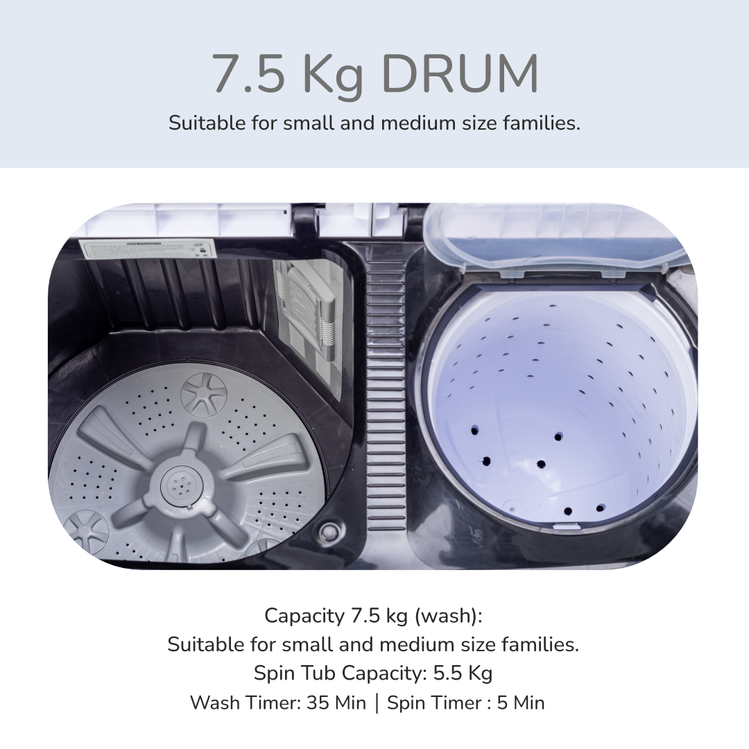 7.5 Kg Capacity – Ideal for small & medium-sized families